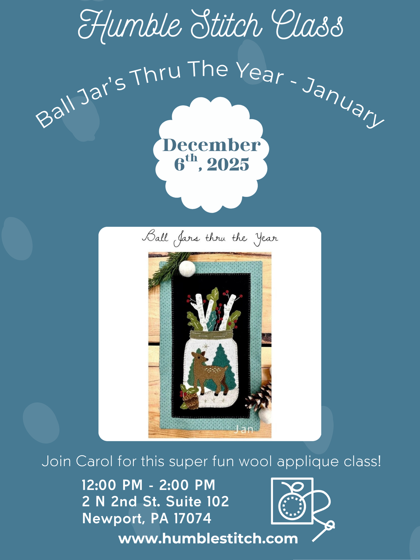 Ball Jars Thru the Year - Wool Applique Class with Carol - January Jar - December 6th