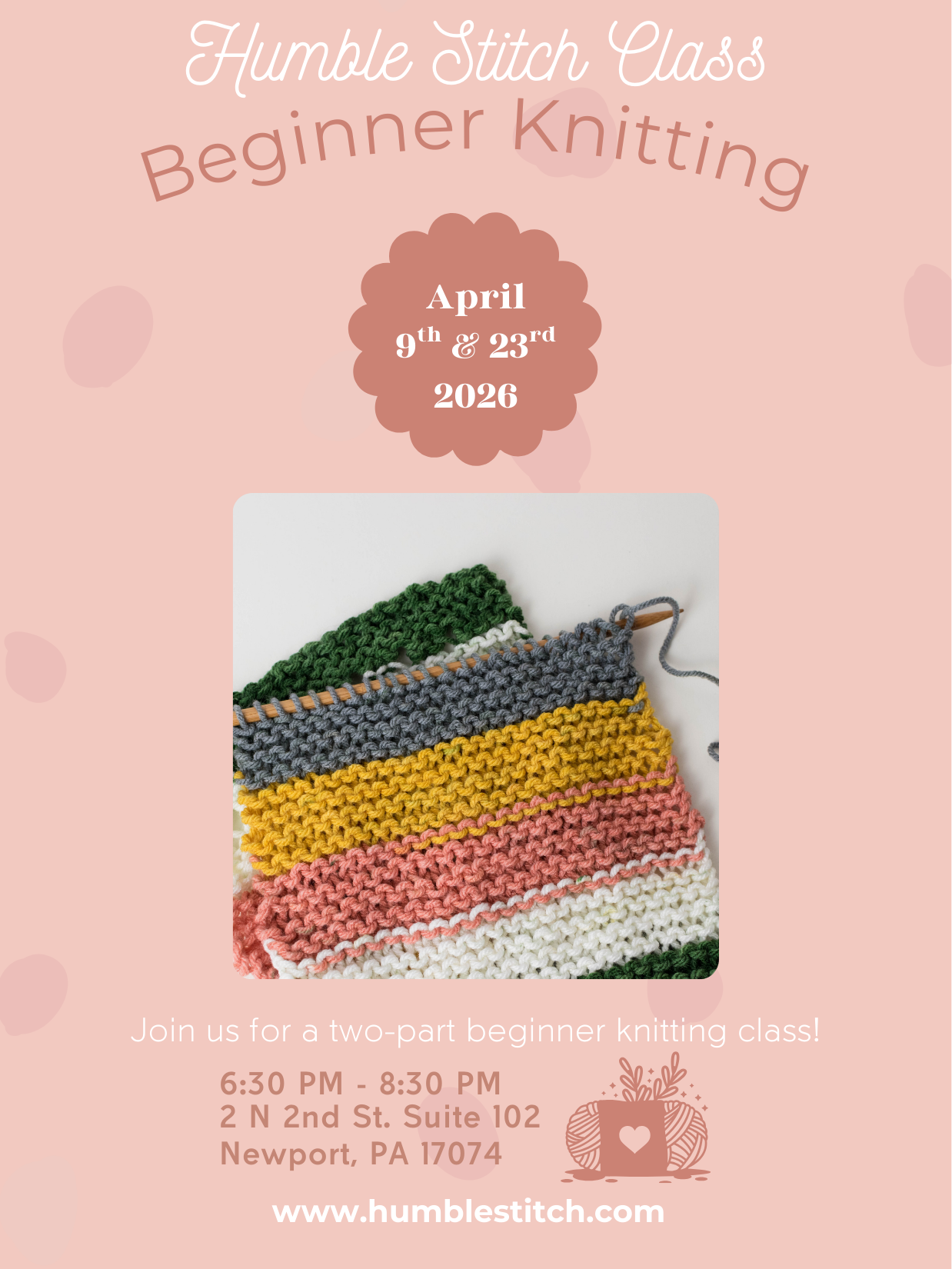 Beginner Knitting with Tammy - 2 Part Class - April 9th and 23rd