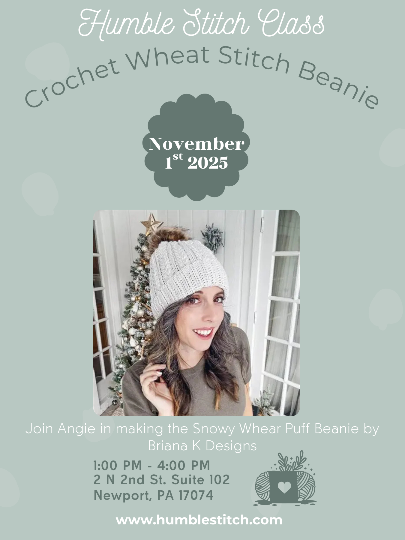 Crochet Wheat Stitch Series with Angie - Snowy Wheat Puff Beanie by Brianna K Designs - November 1st