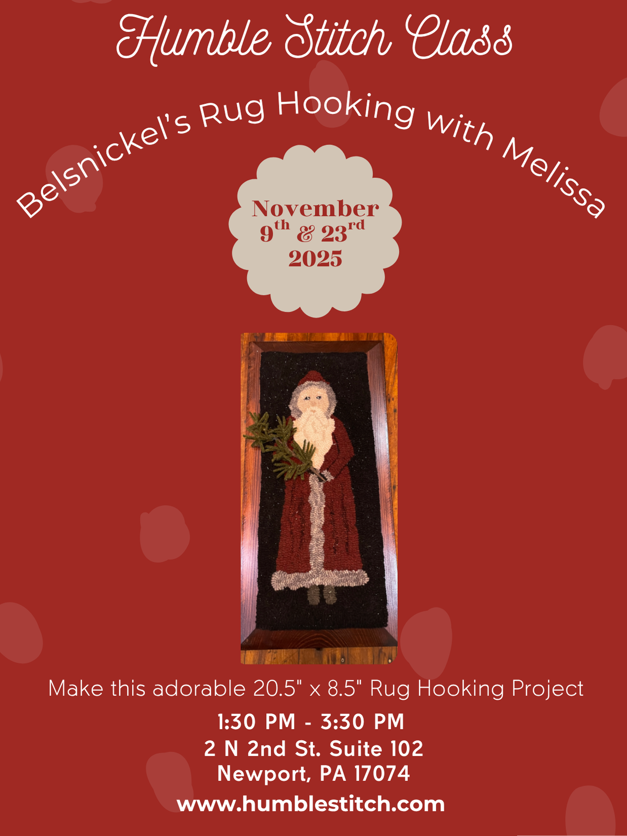 Rug Hooking - Blue Tulip Woolery - Belsnickel's- with Melissa - 2 Part Class - November 9th and 23rd