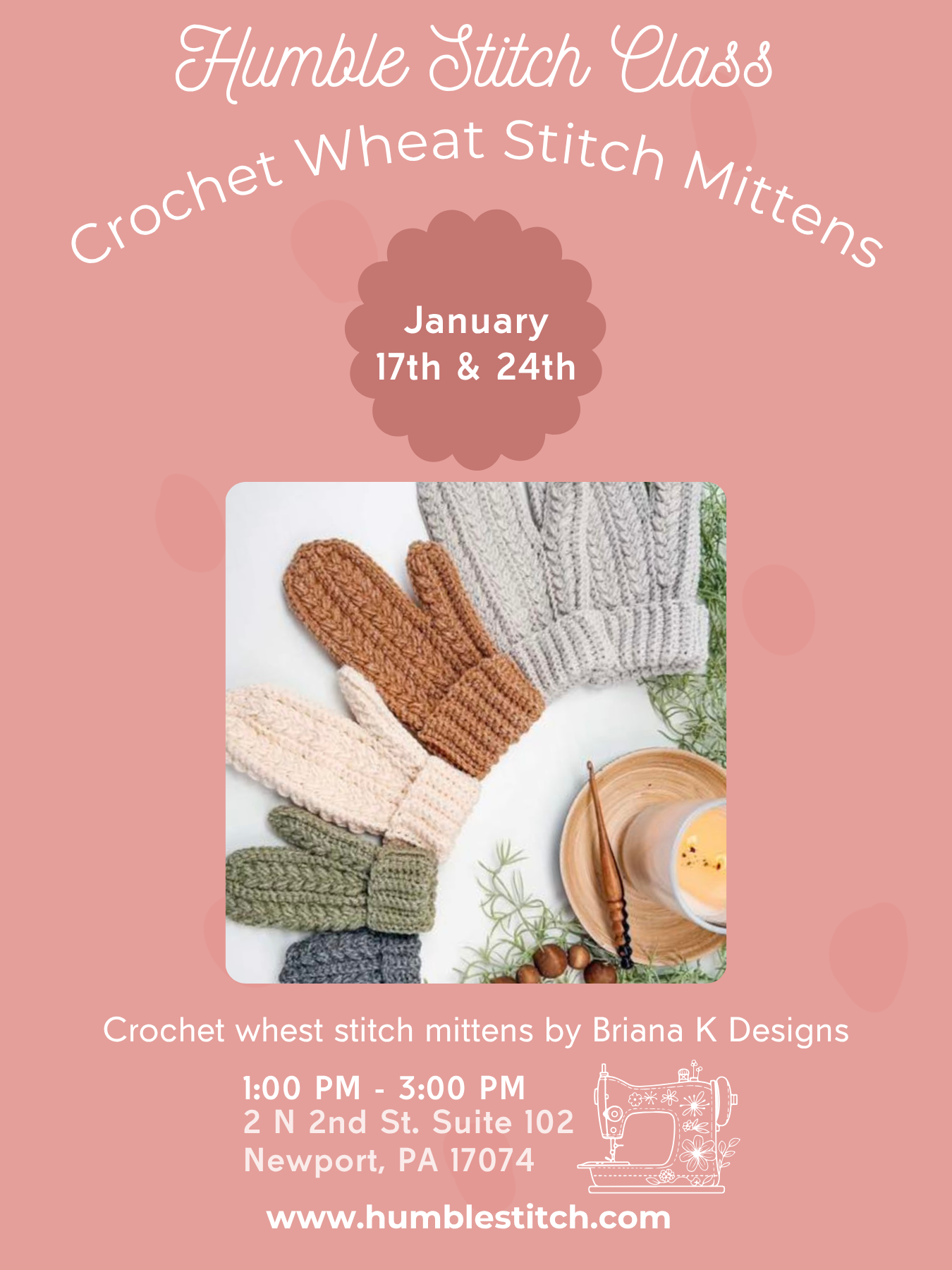 Winter Wheat Crochet Mittens by Brianna K Designs With Angie - January 17th and 24th