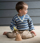 This darling sweater is perfect for that little boy in your life. Fingering weight yarn makes this charming pullover very lightweight - so it's perfect from fall through spring! Sized from 12 months to a 6, the "V"-neckline is flattering on every one of your little guys. Don't let these stripes scare you; color changes are done while carrying the yarn along the edge so you don't have extra ends to weave in.