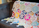 Winter Wonderland is a double-sided blanket that uses felt in between the layers to add color and warmth. The construction of this blanket does require a bit of basic-level sewing to complete. The throw is worked in pieces - first the hexagons are created, then the snowflakes for the reverse of the blanket, and then everything is pieced together to create this stunning blanket.