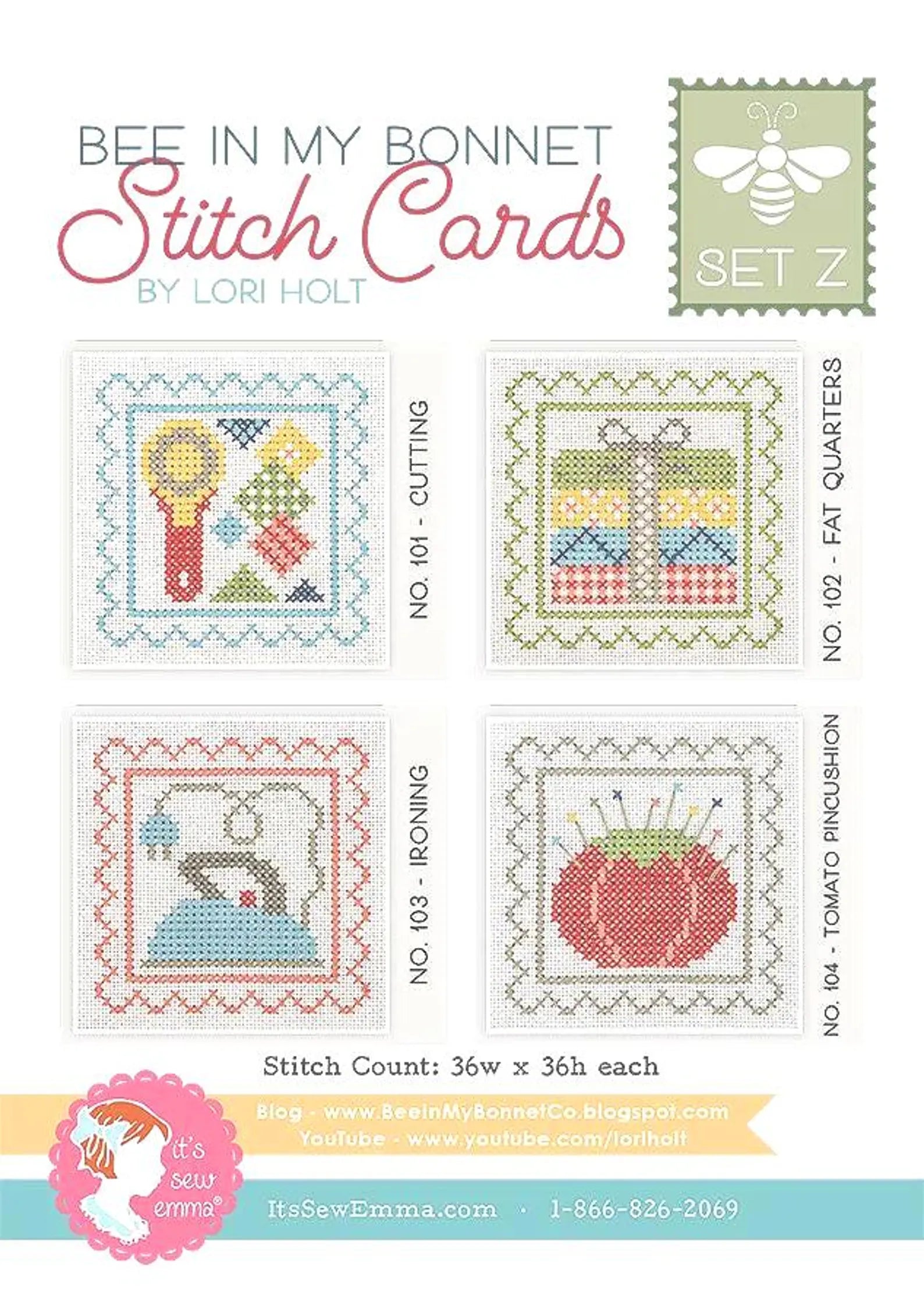 Lori Holt - Bee In My Bonnet - Cross Stitch Pattern - Stitch Cards - Set Z
