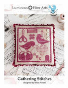 The model was stitched over 2 threads on 32 Ct. Sparrow linen by Luminous Fiber Arts (alternatives are listed as Doubloon by Picture This Plus or Vintage Country Mocha by Zweigart) with Belle Soie Silk floss.