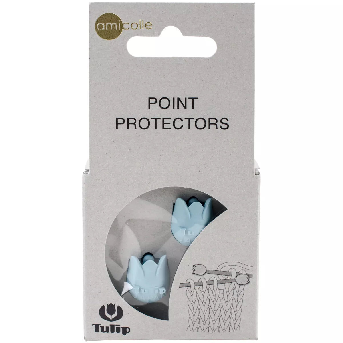 Tulip Needle Company-Point Protectors: Small. Put the tulip shaped point protectors on the double-pointed knitting needles in order to use them as single-pointed needles. The protectors keep your stitches from slipping off the needle when you put your work down. This package contains two point protectors.