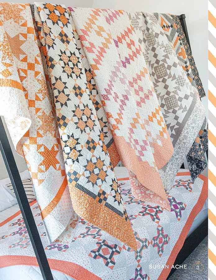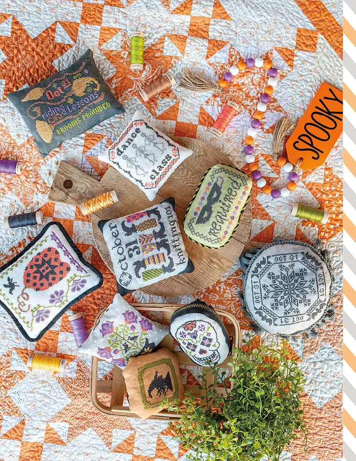 Halloween Memories by Susan Ache celebrates the magic of Halloween and Fall with eight quilts and nine cross stitch designs. In classic Halloween hues of orange and black with a sprinkling of purple, these quilts will remind you of Fall's most magical day. Let Halloween Memories take you back in time or inspire you to create new quilty and stitchy memories for future generations.