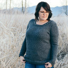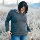 Atlin Sweater by Pip & Pin Collective | Atlin is a top down pullover that has a slight A-line fit, not so much that it's noticeably an "A-line sweater"_x009d_, but just enough to make it really easy to wear. There is a decorative garter stitch panel running up the sides of the body and down the underside of the sleeves and the hem features short row shaping on the front and back for a scalloped silhouette. Atlin is knit top down, has simultaneous set in sleeves and does everything in one piece. The first part of the sweater is knit back and forth to create the collar shaping, and the rest is knit seamlessly in the round.