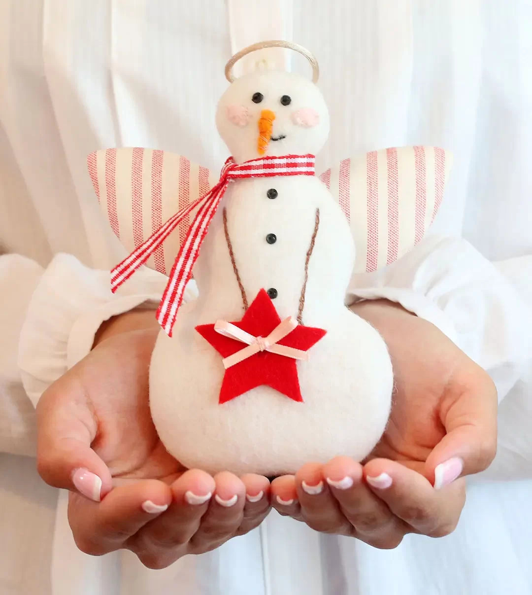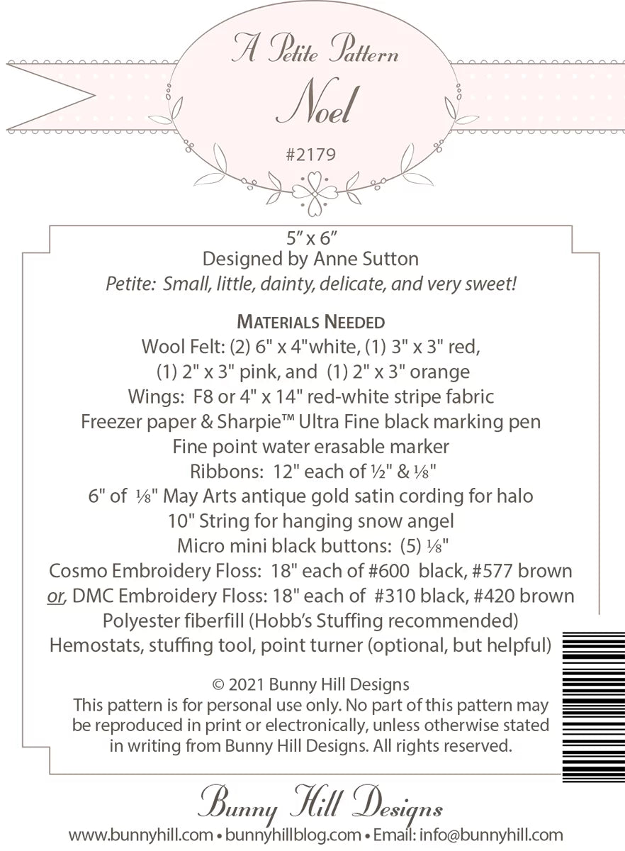 5” x 6” Wool Felt Snow Angel. Noel is perfect for Christmas, and of course, everyone loves a snow angel! She’s easy to make in delightful wool felt. Perfect as a Christmas decoration. Hang her on your tree, tie her on a present, or tuck her in a garland.