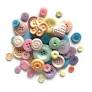 The Pastel Color Button Grab Bag from Buttons Galore and More includes 6 ounces of assorted Pastel Pink, Blue, Purple, Yellow, and Green craft and sewing buttons. This ziplock bag of buttons includes round sewing and craft buttons ranging in size from .50 inches to 1 inch. Includes primarily 2 and 4 hole sew through type buttons and can include some shank style buttons. Perfect for adding that personal touch to scrapbook pages, greeting cards, garments, mixed media and home decor projects. These buttons can be glued or sewn on to almost any surface, including wood, metal, paper, felt, fabric and much more. Assortments will vary.
