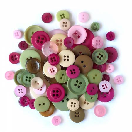 3.5oz. Approx. 125 Buttons. 2 and 4 Hole Sew Through Buttons. Size: 1/2in - 11/16in. Buttons included in each pack may vary due to availability, but will still fit the noted theme. Theme novelty craft and sewing buttons. Can include shank, sew through, and flat back buttons in each pack. These cute little bags are filled with buttons of all different sizes with colors of beige, brown, olive, pink and magenta..