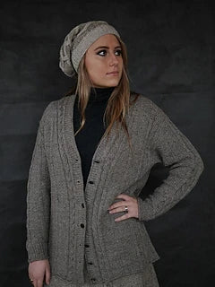 This lightweight, drop shoulder cardigan in three sizes (S-M/L-2X/3X-5X) with an oversized fit is so soft, comfy, and versatile that it can be worn indoors or out, alone over loungewear or layered over jeans and boots. The fit works well for women and men alike; an allover knit/purl texture and cabled details lend visual substance to an otherwise airy fabric with flattering drape. Constructed from flat knit, portable pieces in easy to learn patterns, this addictive knit is an engaging deep winter or summer vacation project.