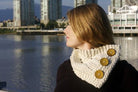 If you are a new knitter, or in need of a quick project, this zippy little button scarf is an opportunity to learn about reading charts and working very basic lace stitches. In a super-bulky yarn False Creek works up quickly, making a perfect gift.