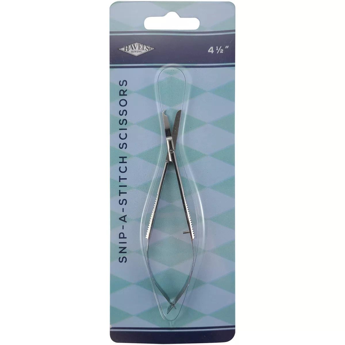 These 4 1/2 inch thread scissors feature a notched blade, which slides easily under single thread! The easy squeeze grip is ideal for arthritic hands. Thin pointed blades snip quickly and cleanly. Great for taking stitches out of all types of needlearts and embroidery!