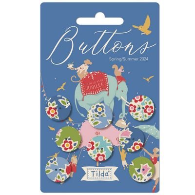 Tilda's Jubilee Collection Fabric Covered Buttons includes 8 3/4in (18mm) fabric covered buttons. Tilda Fabric's Jubilee Collection are 100% cotton prints designed by Norwegian designer Tone Finnanger. This year, Tilda turns 25 and to celebrate the occasion we have gathered festive fabric designs from different collections over the years to create the colorful Jubilee collection. Perfect for birthday and jubilee celebrations with reds and blues accompanied by teals, yellows and pinks.