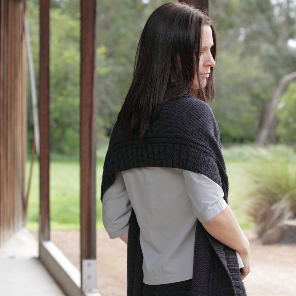 Materials Used: MillaMia Naturally Soft Aran (100% Extrafine Merino; 87yds / 80m / 50g); Colour Slate. 10 skeins. Yardage = 800m / 870 yds.