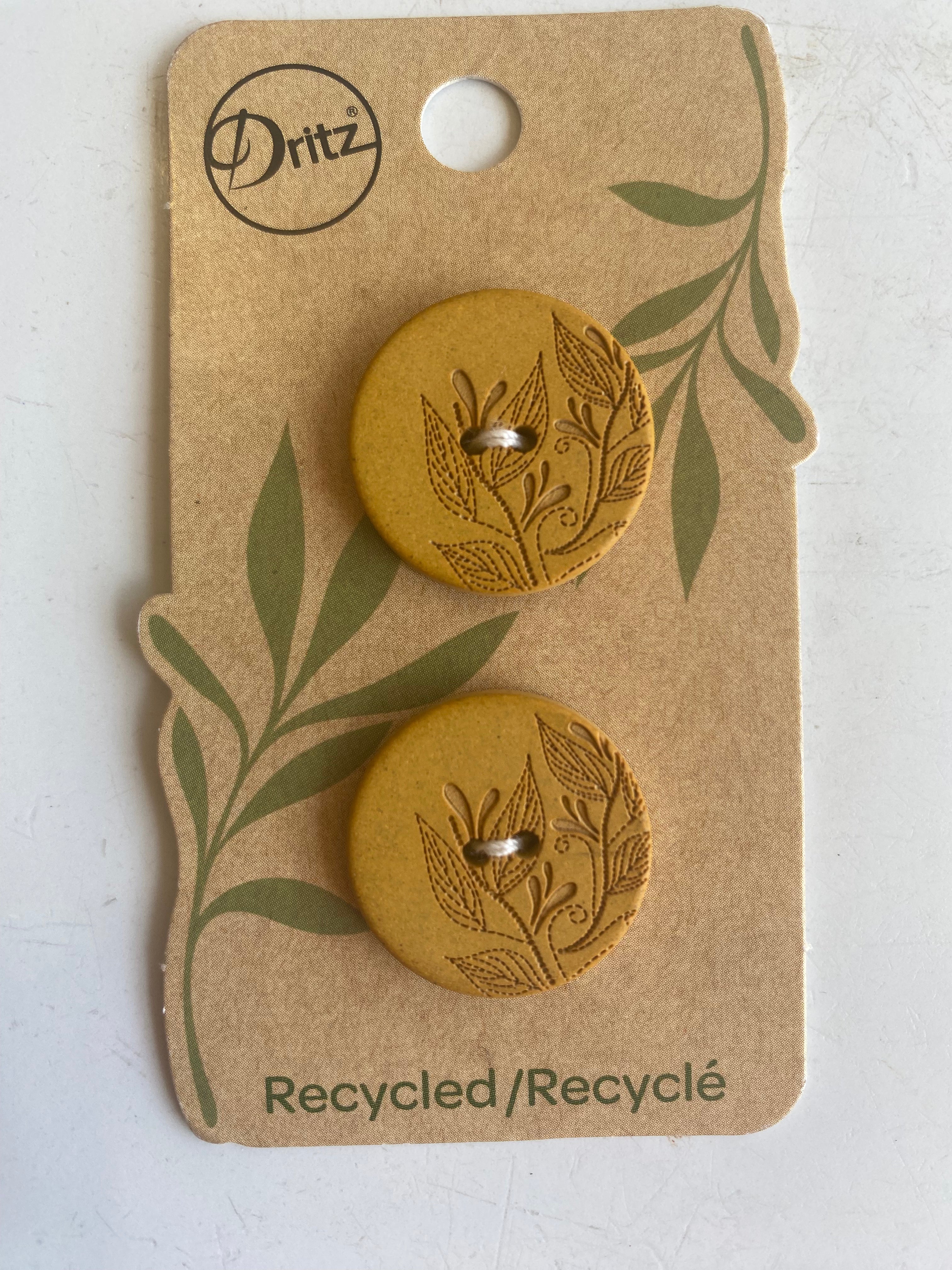 Dritz - Recycled Hemp Button - Floral Mustard 2pc