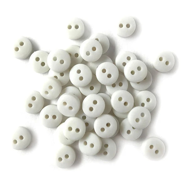 White is a button assortment in Buttons Galore's Tiny Collection of sewing and craft buttons. These small white buttons can be used to adorn dolls, clothing, quilts, needlework, embroidery, scrapbook pages and paper craft projects. Simply glue or sew onto most surfaces.