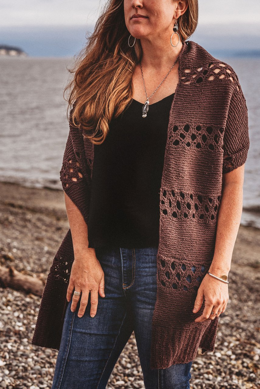 Fletcher Wrap by September Knits. This design idea has been floating around in my head for a while and holds a sweet spot in my heart. Both my mother and grandmother knit and crochet. My grandmother taught me to know to do both. I wanted to create a design that utilized both of these needlecrafts. Creating this wrap felt like a tribute to both of them as I switch from knitting to crocheting throughout the pattern. Fletcher is my grandmothers’ maiden name and this designs namesake. Fletcher was created to accompany an outfit as we move into the warmer months. It is very soft and lightweight thanks to the light worsted spun yarn worked at a loose gauge. The open lace sections allow a warm breeze to flow in yet keep the shoulders and neck cozy.