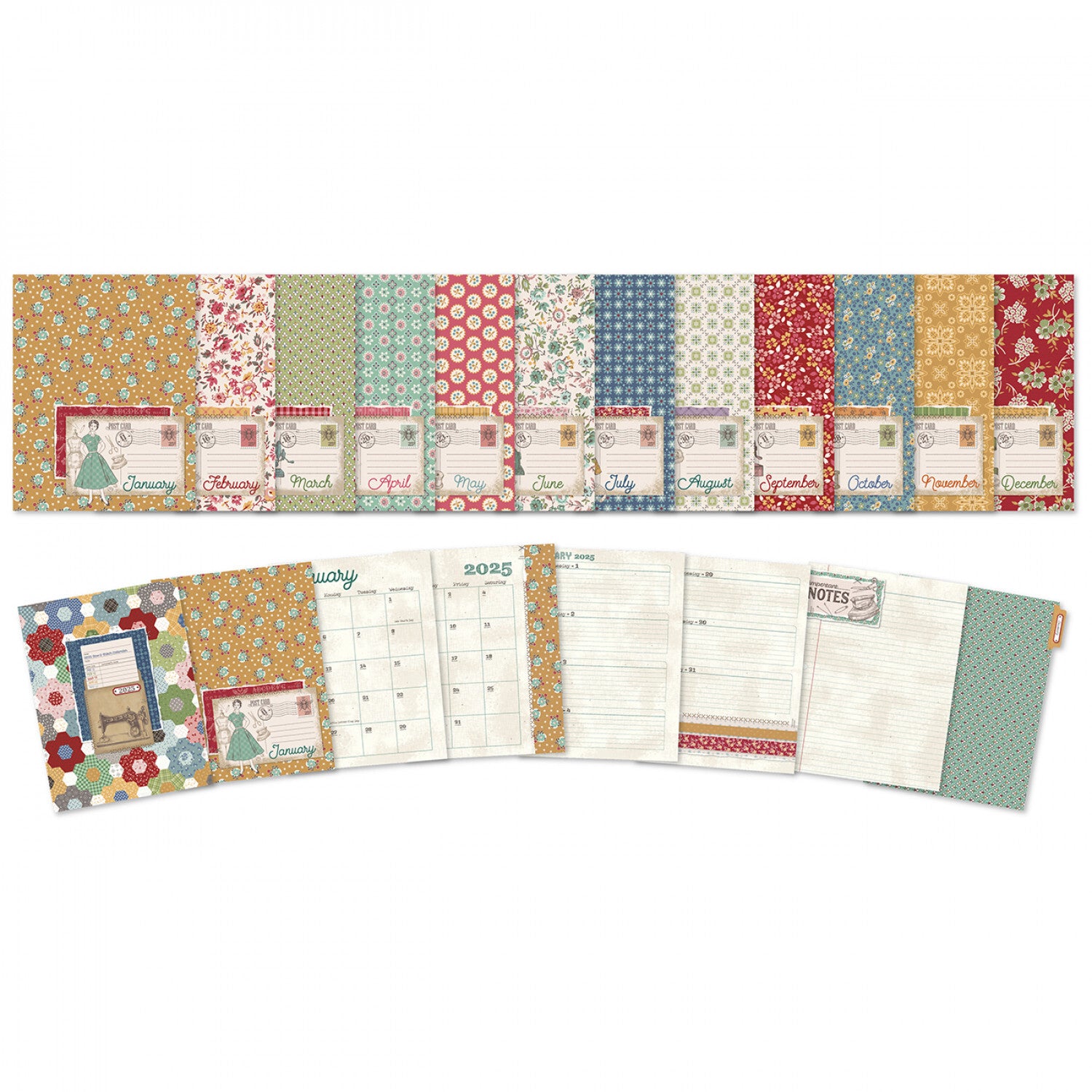 The 2025 Sew & Stitch Binder Calendar by Lori Holt of Bee in my Bonnet includes individual, three-hole punched, 8 1/2" x 11" papers that fit perfectly in any of Lori's Bee Keeper Binders. The calendar pages run from January to December 2025 with weekly and monthly pages. They are large enough to write all your important dates, such as Lori's sew alongs, stitch alongs, and more. The calendar comes with 18 dividers: 1 for each month; 3 for the quilt, stitch, and yarn projects; and 3 for your customization. Use it exclusively for projects or as a planner. It is designed in Lori's vintage paper crafting style using prints from her designer fabric collections. The Busy Bee Quilt, Stitch, and Yarn pages are sold separately (ST-35022, ST-35023, and ST-35024). Printed in the USA on premium paper.