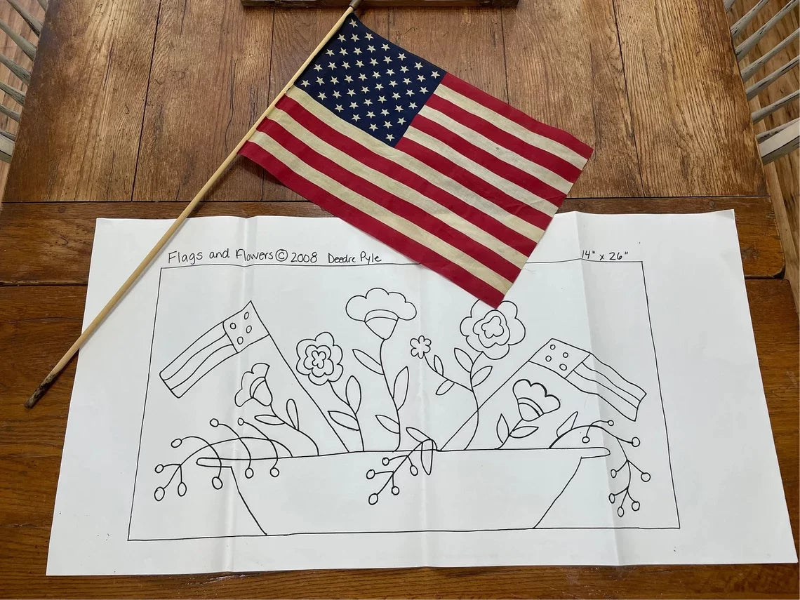 Red Cabin Rugs - Flags and Flowers - Rug Hooking Pattern - 14 x 26